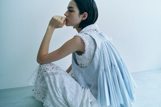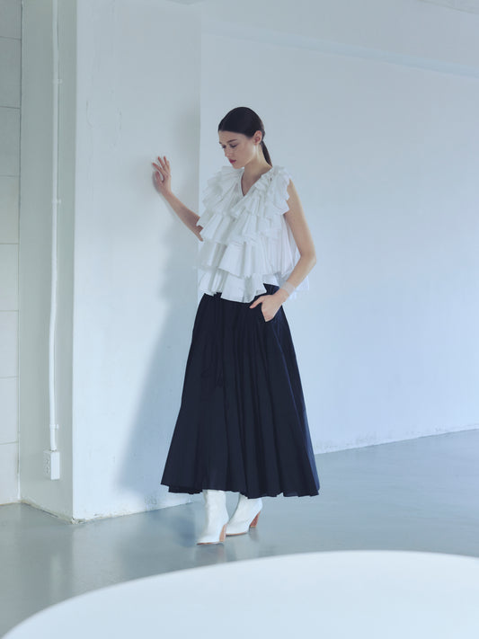 AAYUSHI ランダムギャザーバックフリルベスト〔SFN0303〕Asymmetrical Gathered Back Frill Vest