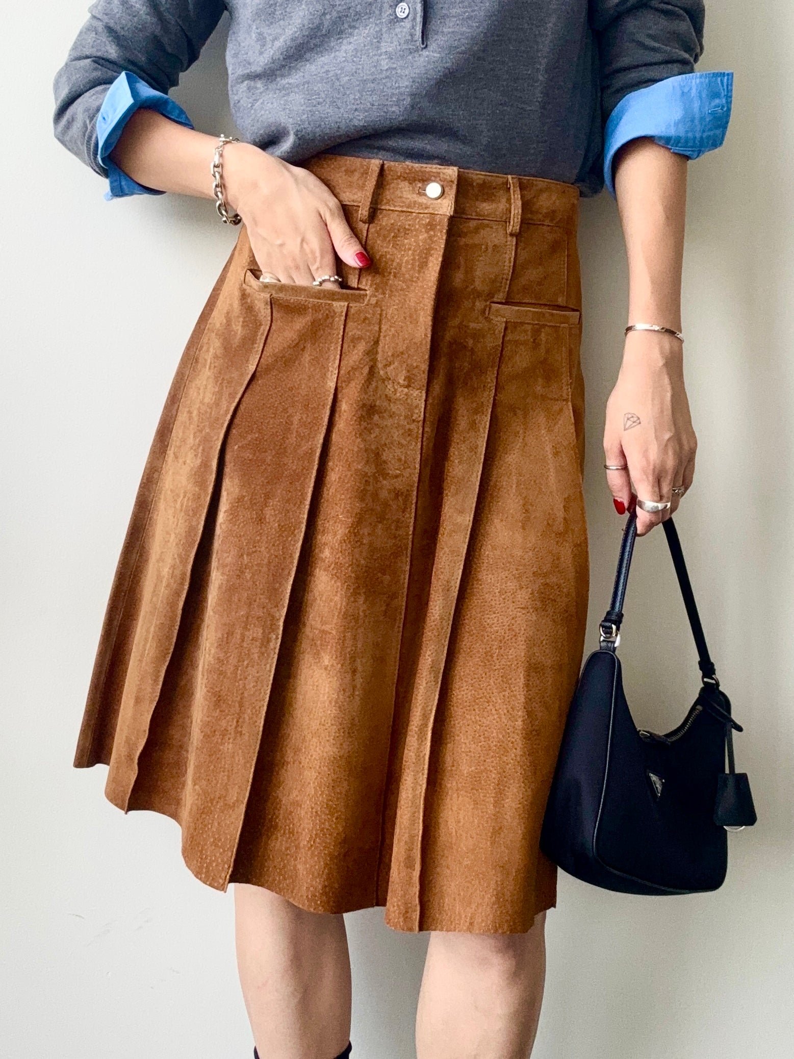 suede-look skirt.