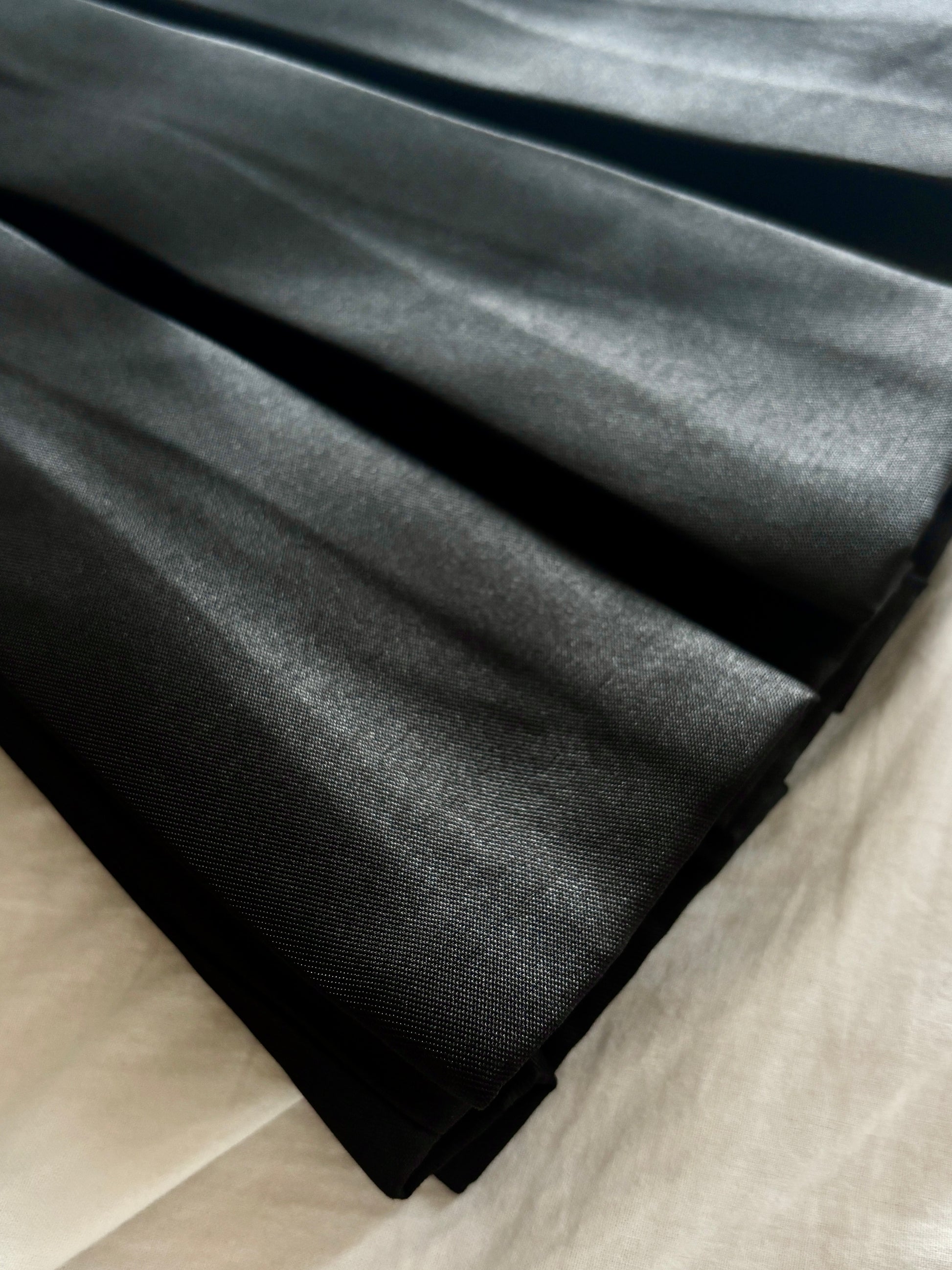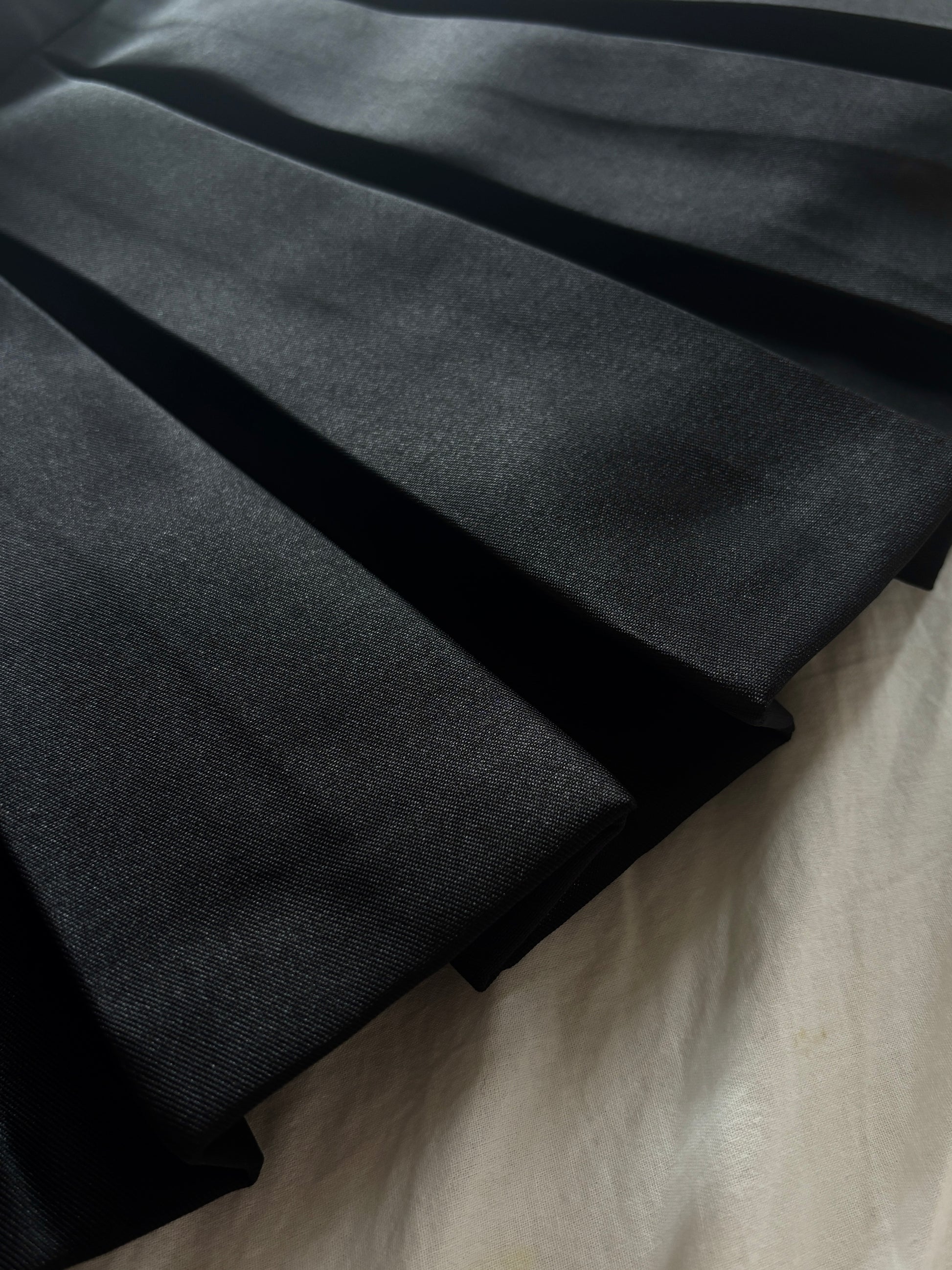The fabric has just the right amount of structure to enhance the pleats’ crisp silhouette, creating a sharp and sophisticated impression.