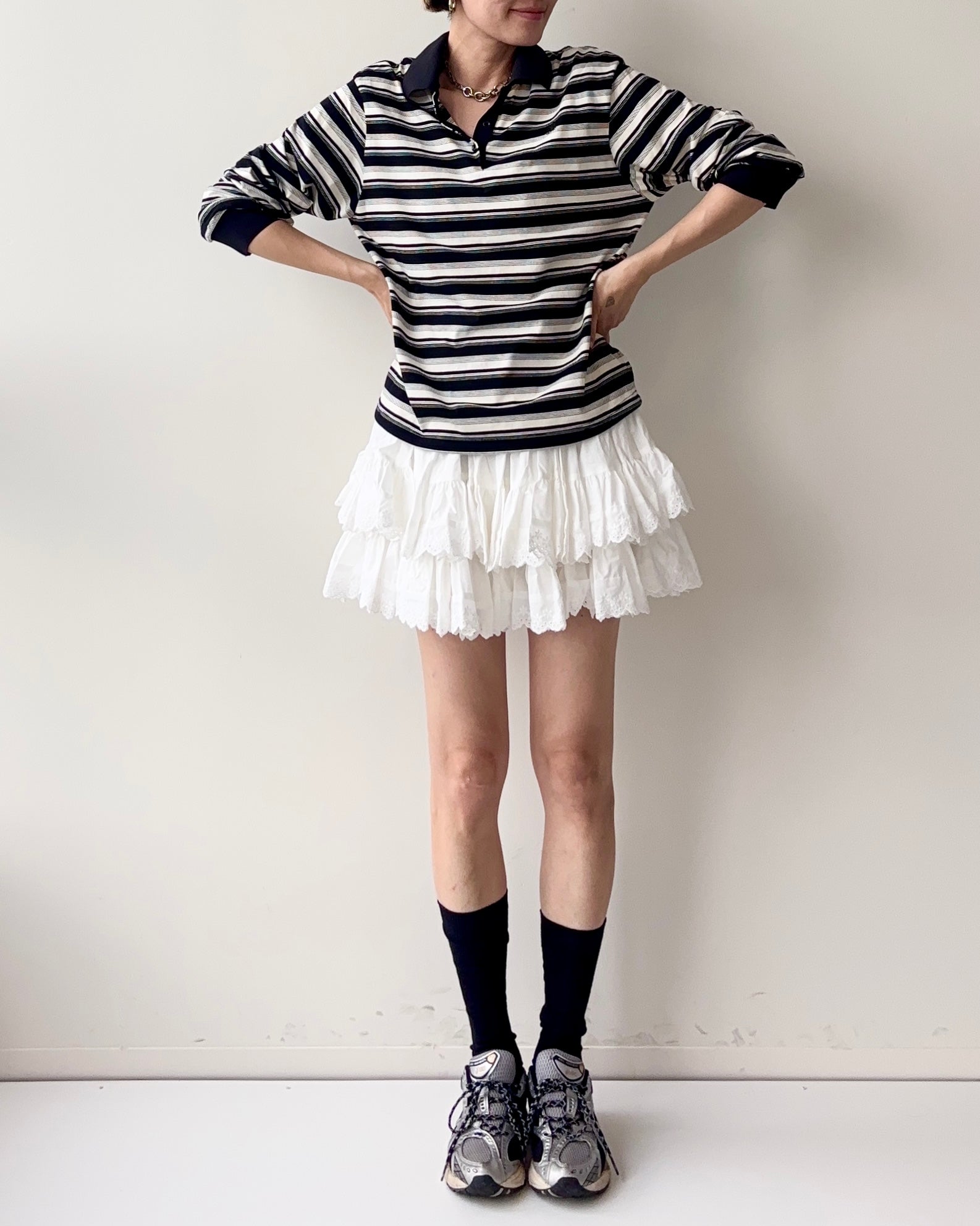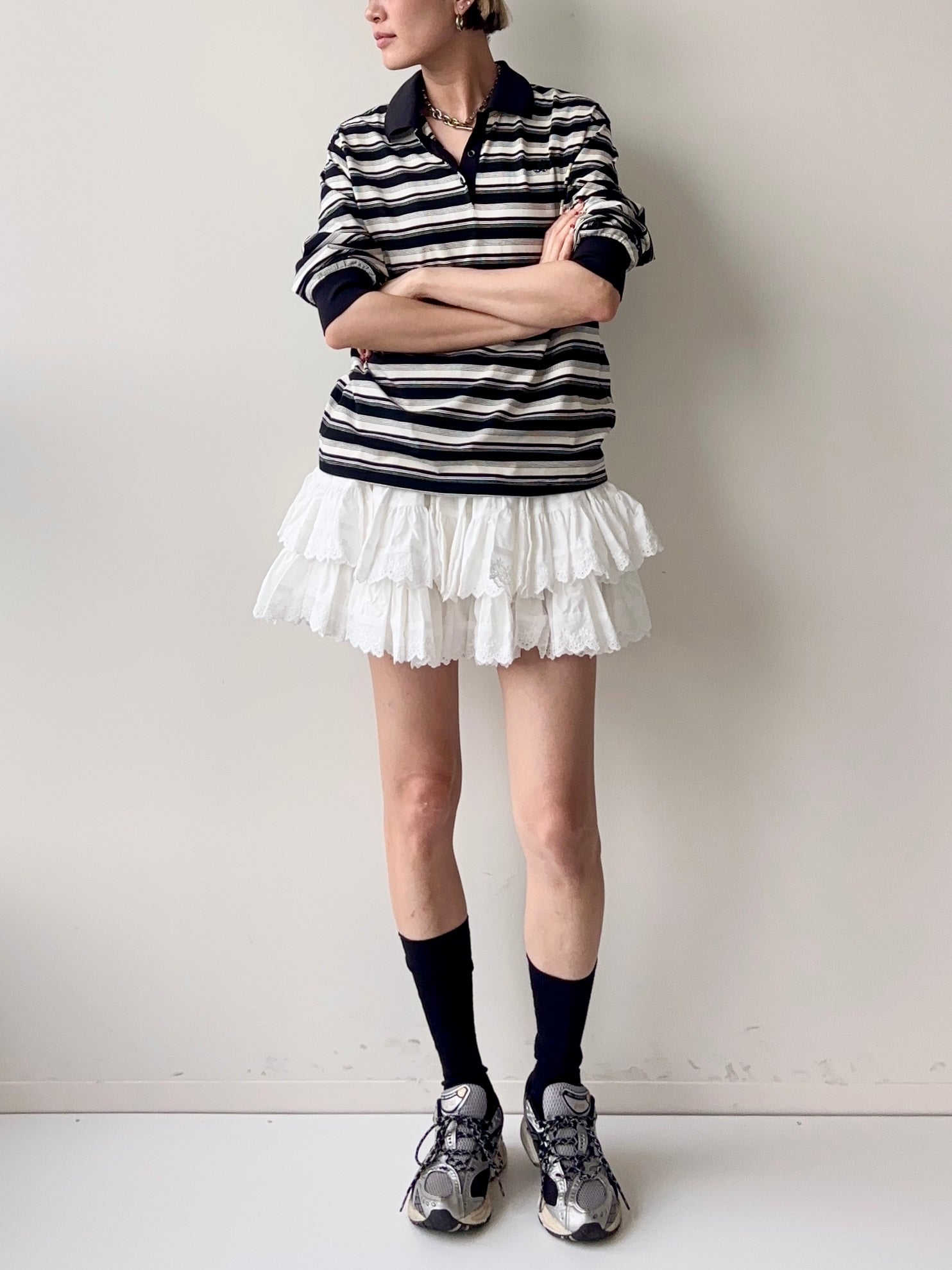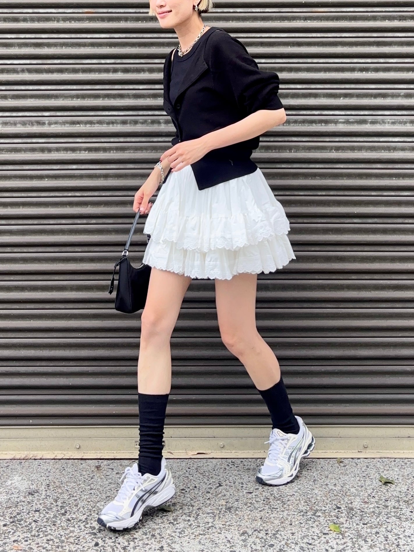 Tシャツやスウェットと合わせて甘辛ミックスに、ジャケットやシャツで