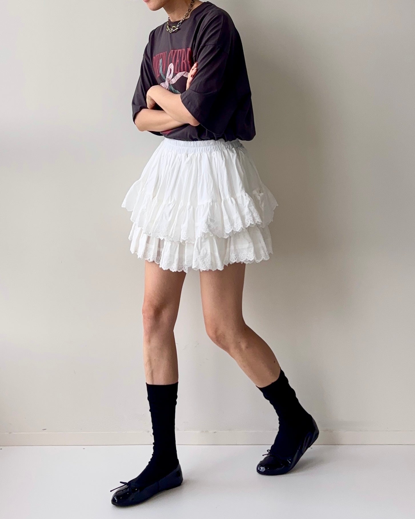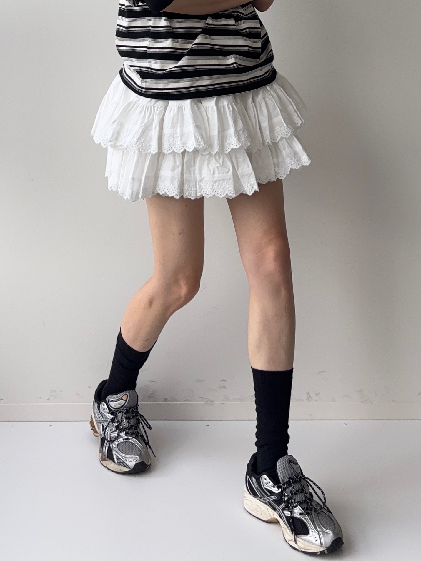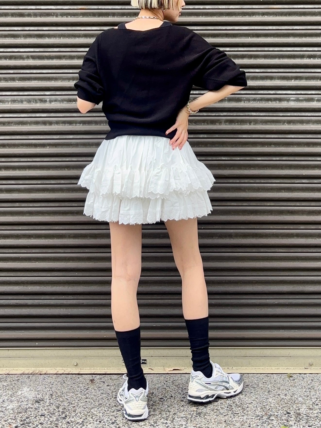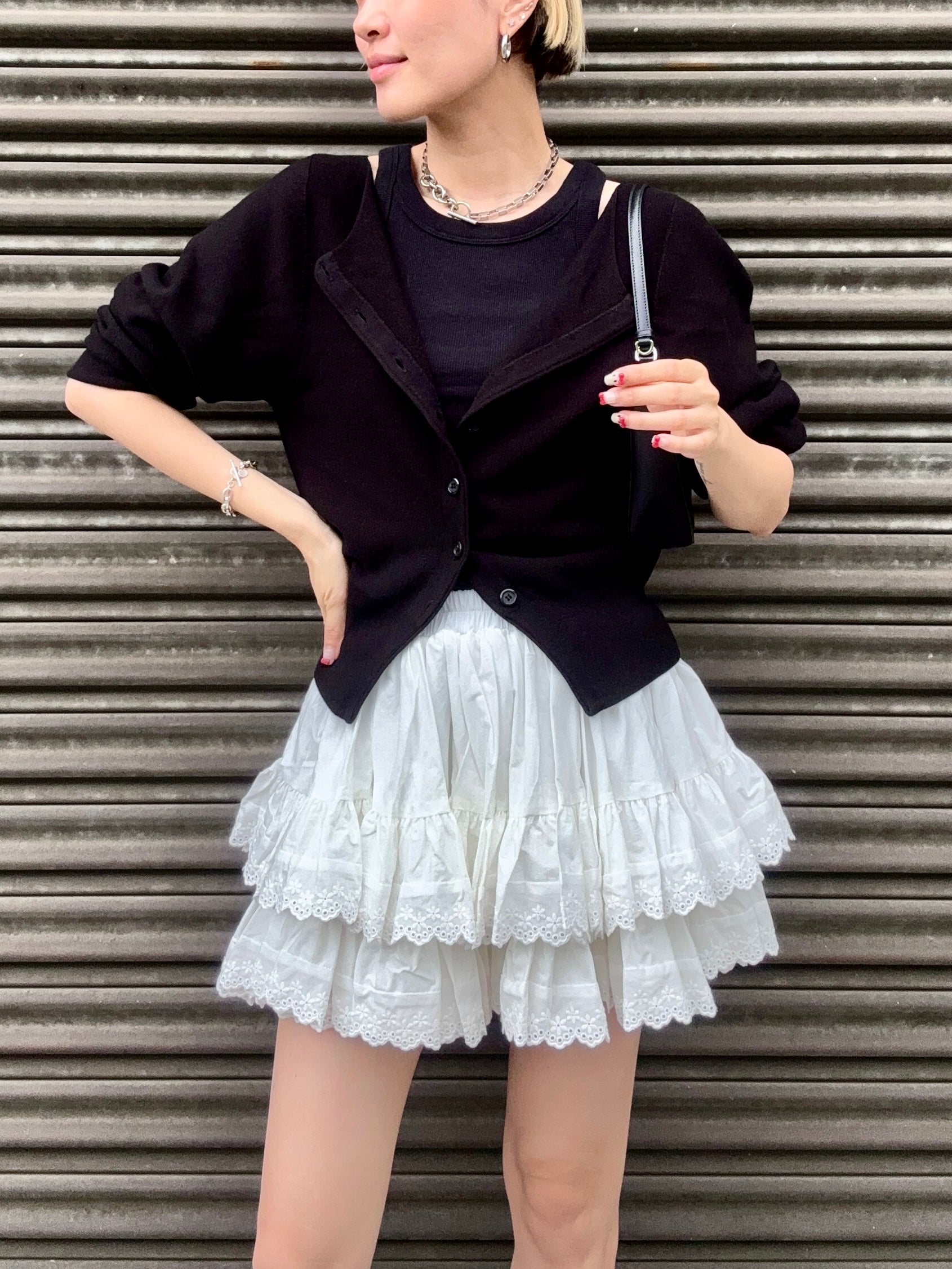 甘すぎない“大人の可愛さ”を叶える、ティアードフリルレーススカート見えパンツ