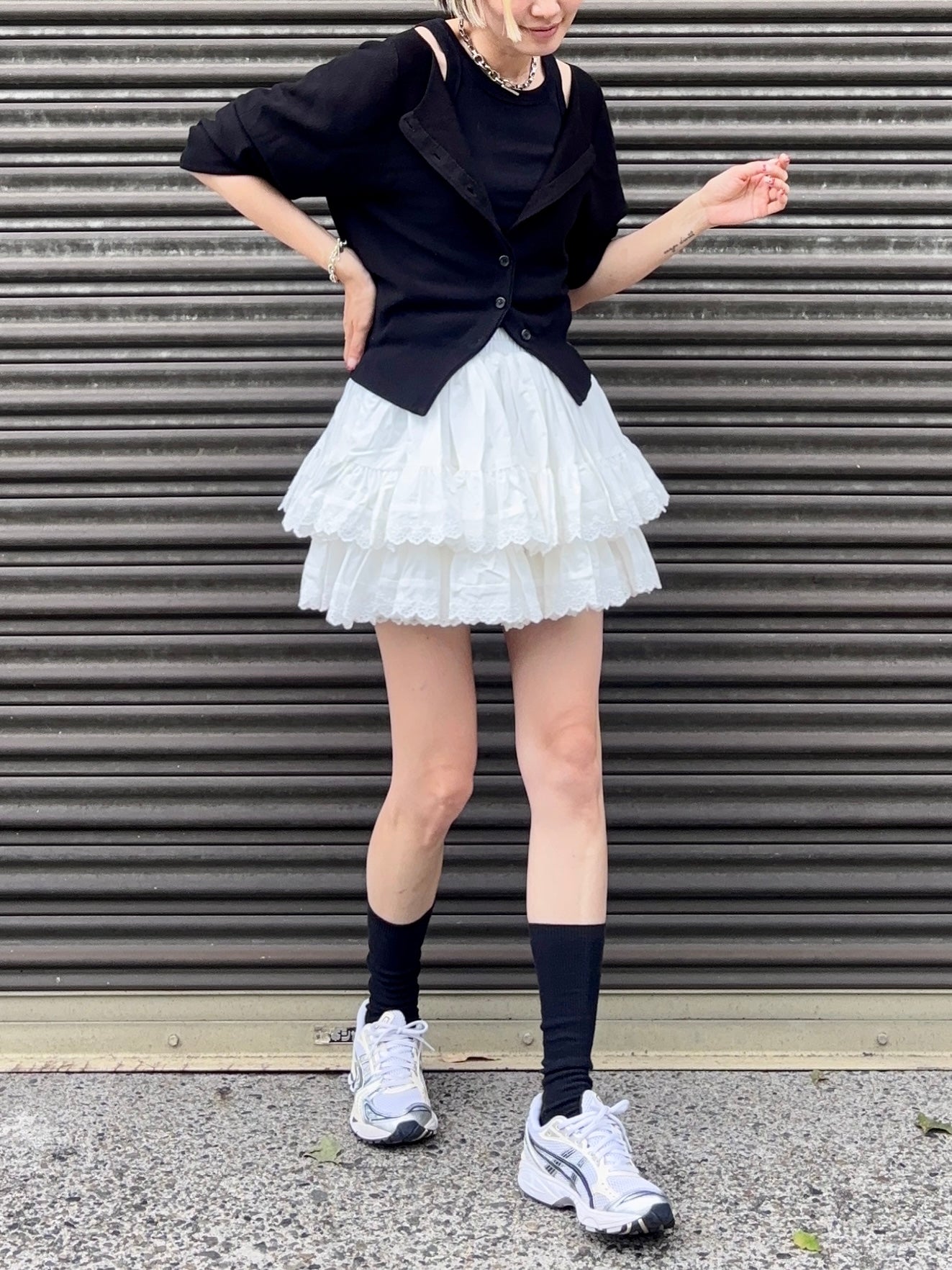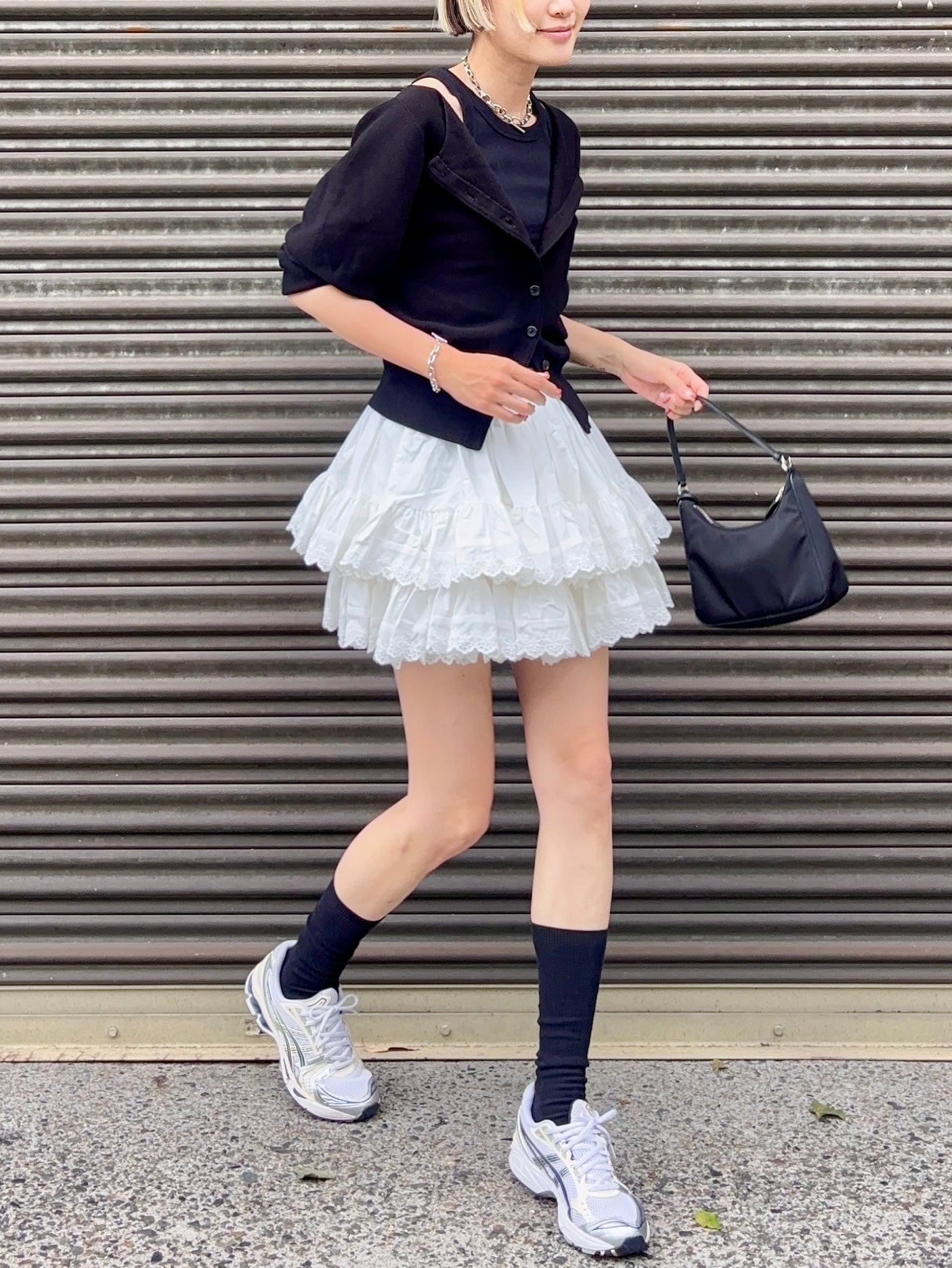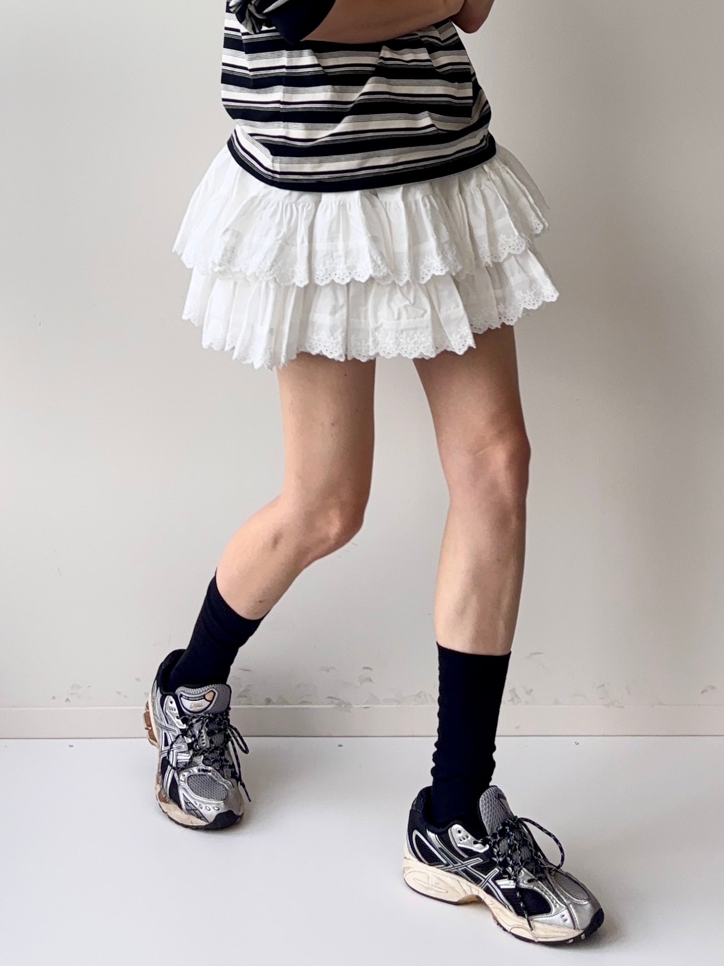甘すぎない“大人の可愛さ”を叶える、ティアードフリルレーススカート見えパンツ