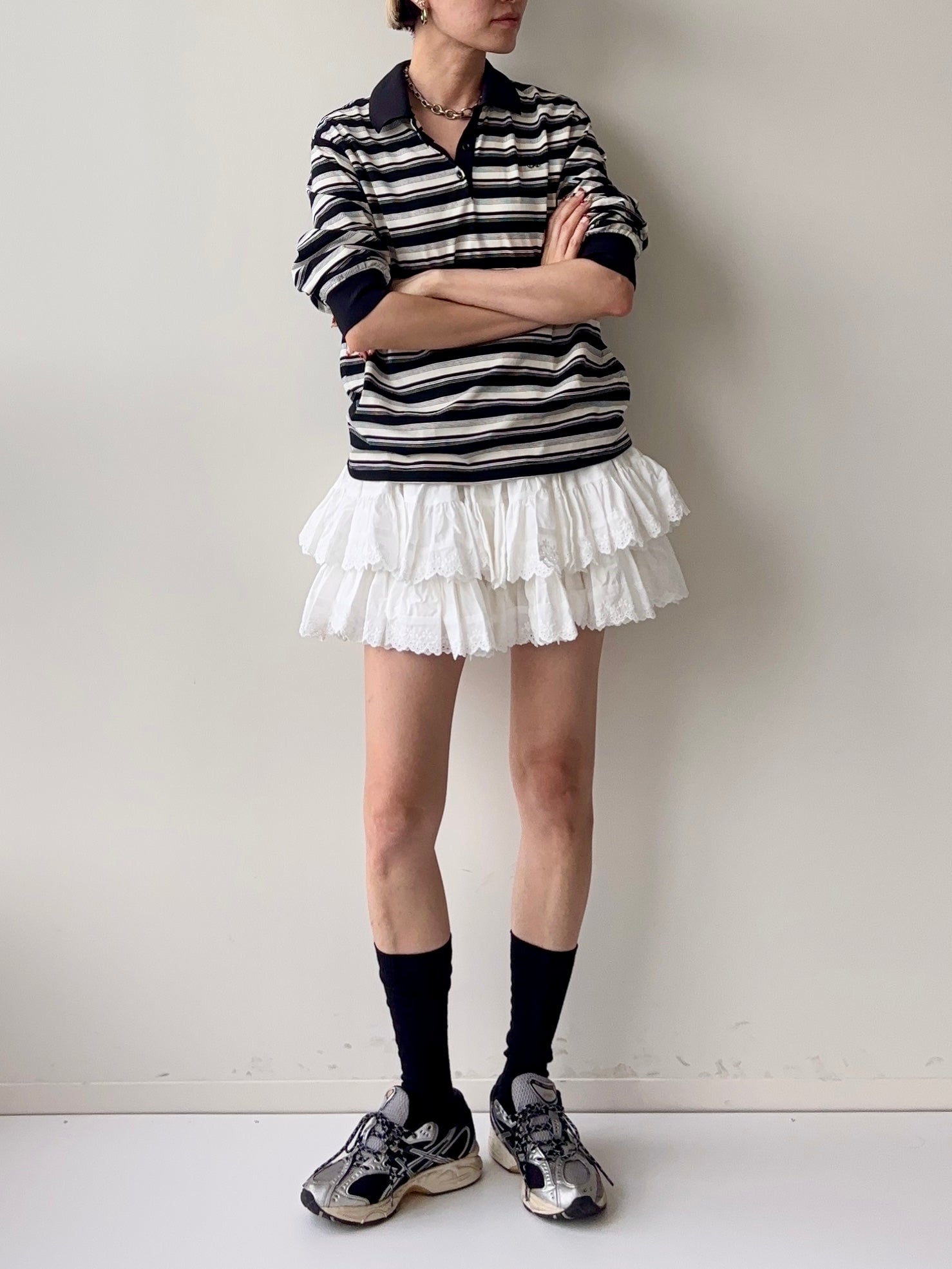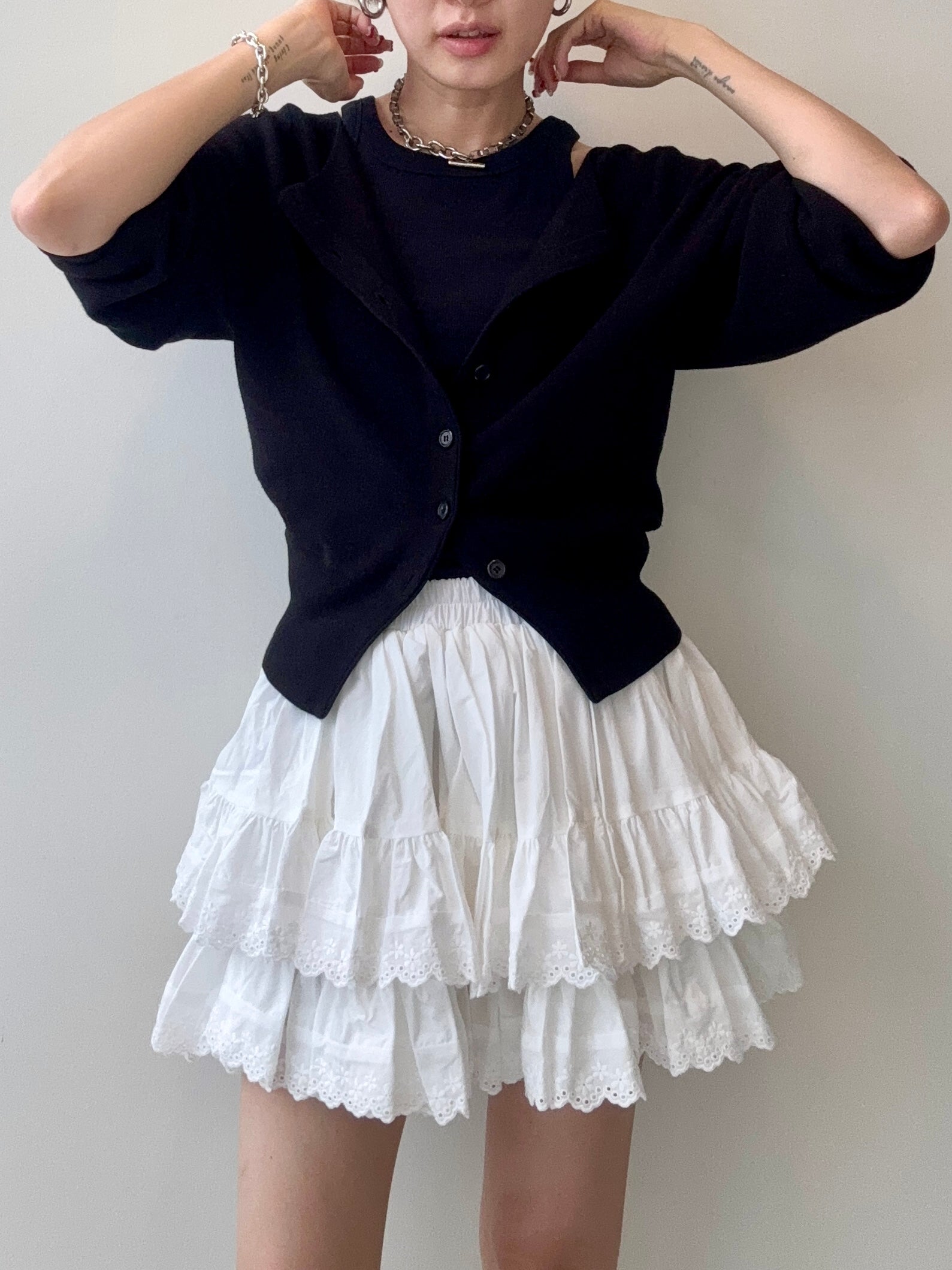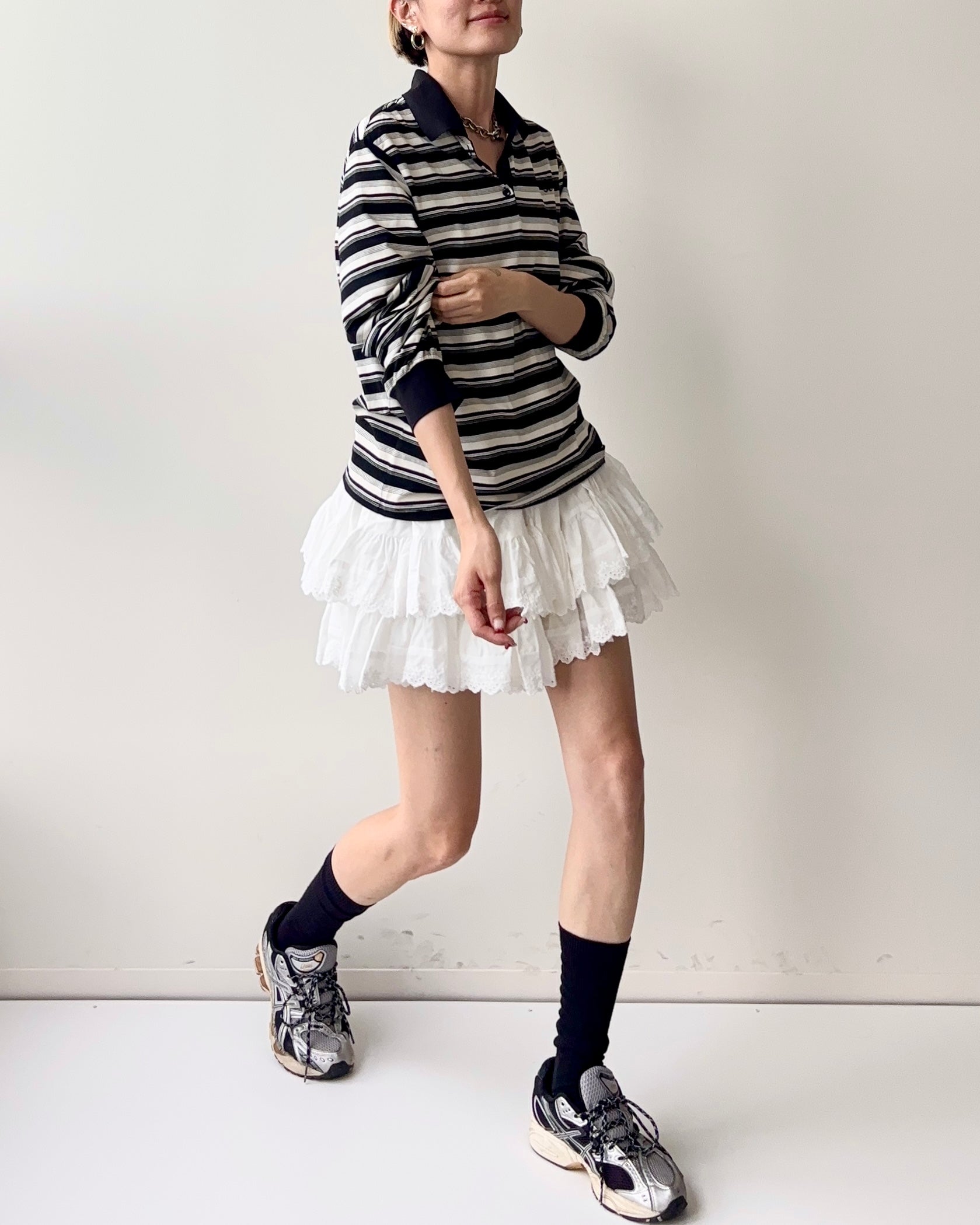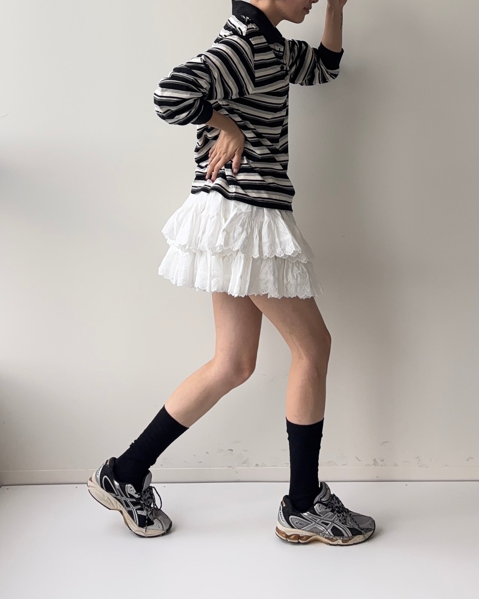 甘すぎない“大人の可愛さ”を叶える、ティアードフリルレーススカート見えパンツ