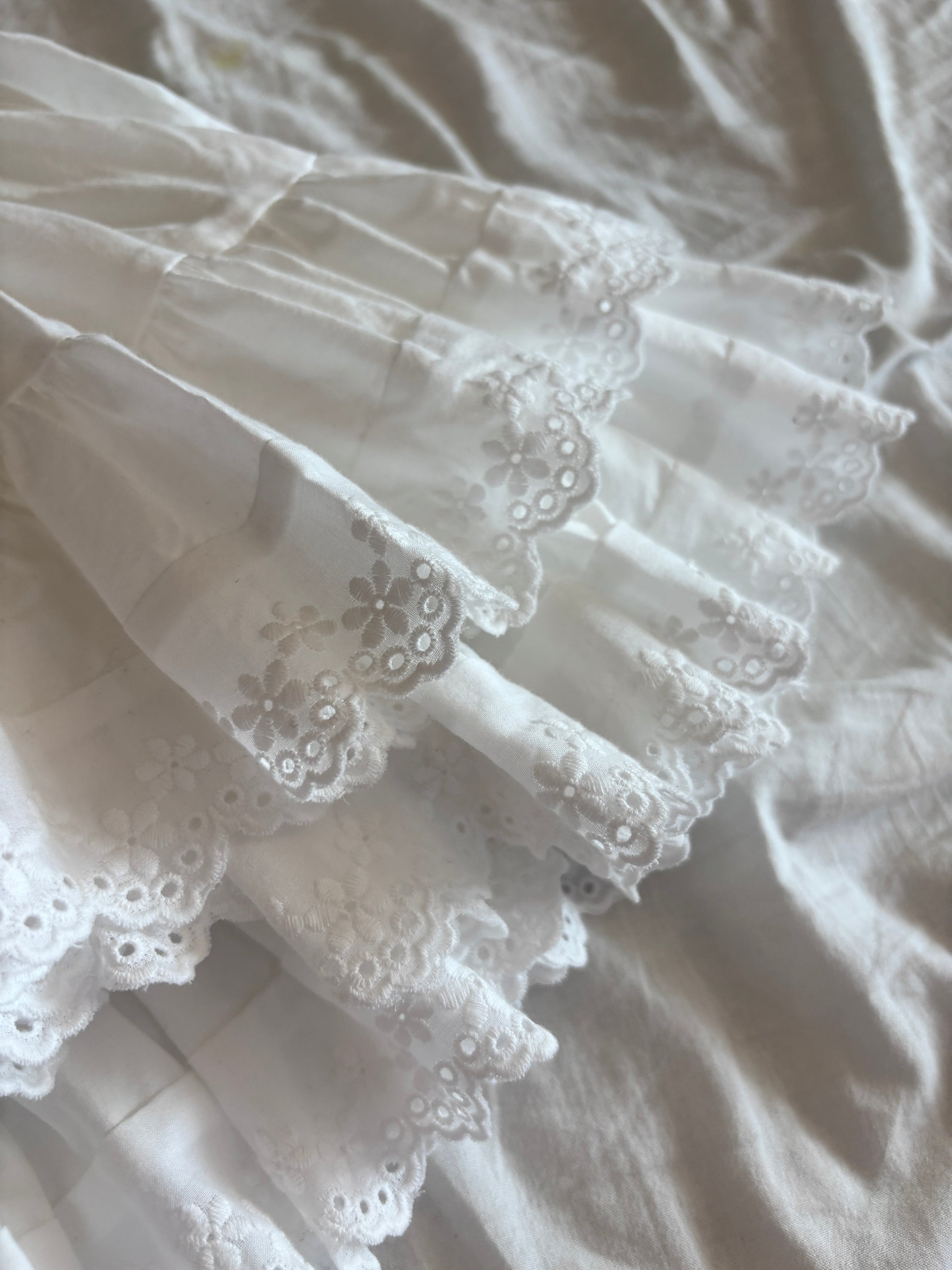 ふんわり広がる2段のティアードデザインと繊細なレースが魅力的ながら、