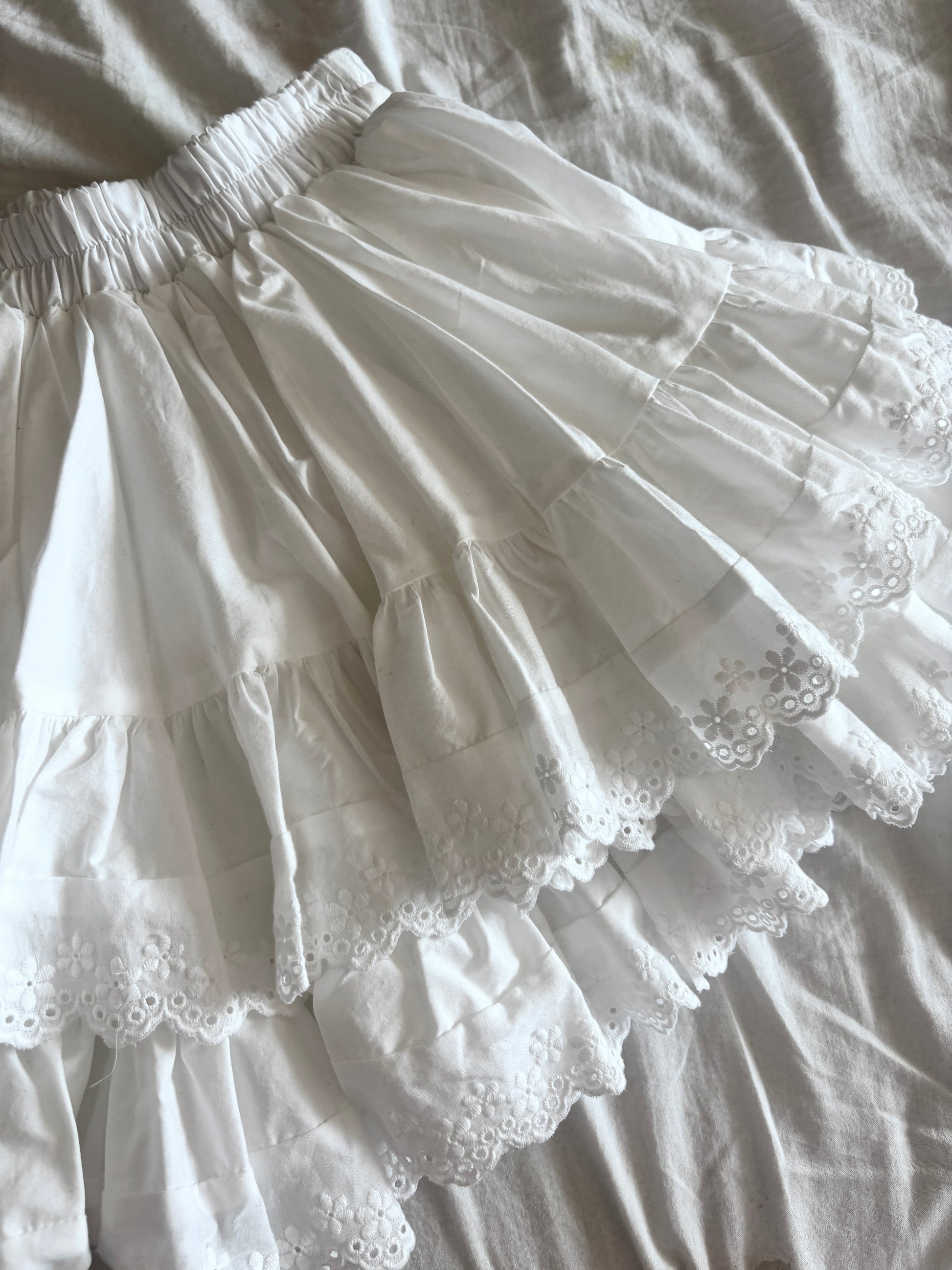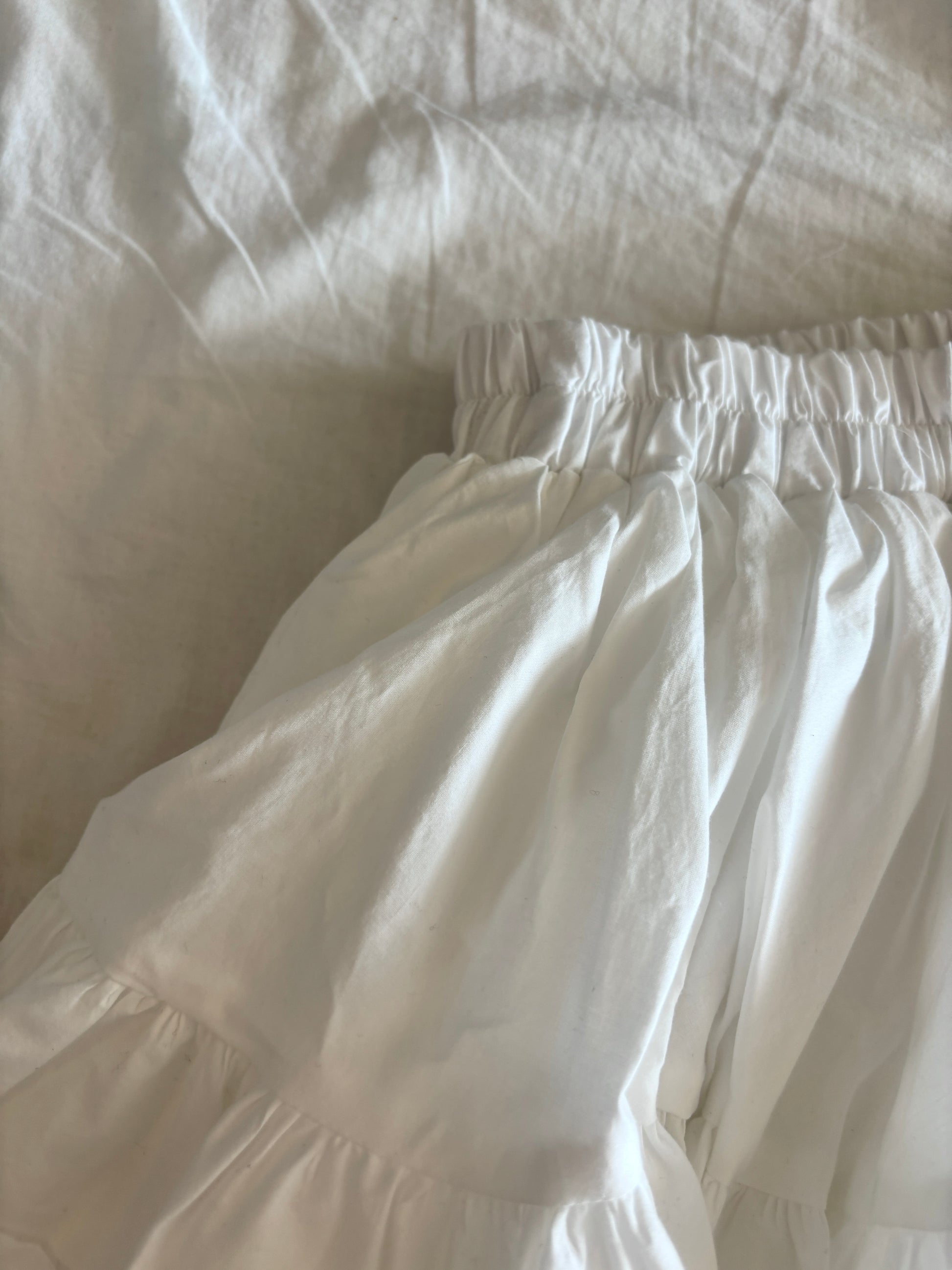 At first glance, it looks like a romantic, lace-tiered skirt—but look again: it’s actually a pair of cleverly designed shorts pants .