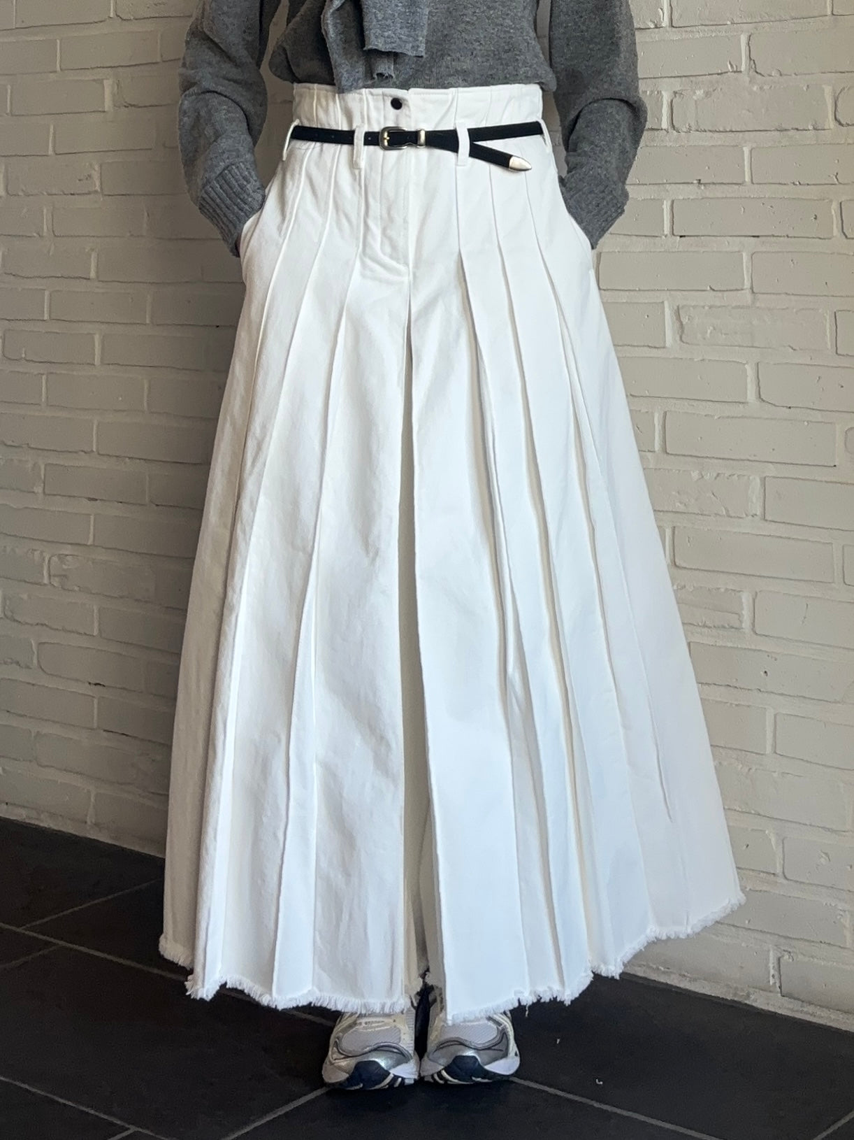 WHITE DENIM PLEATED PANTS
