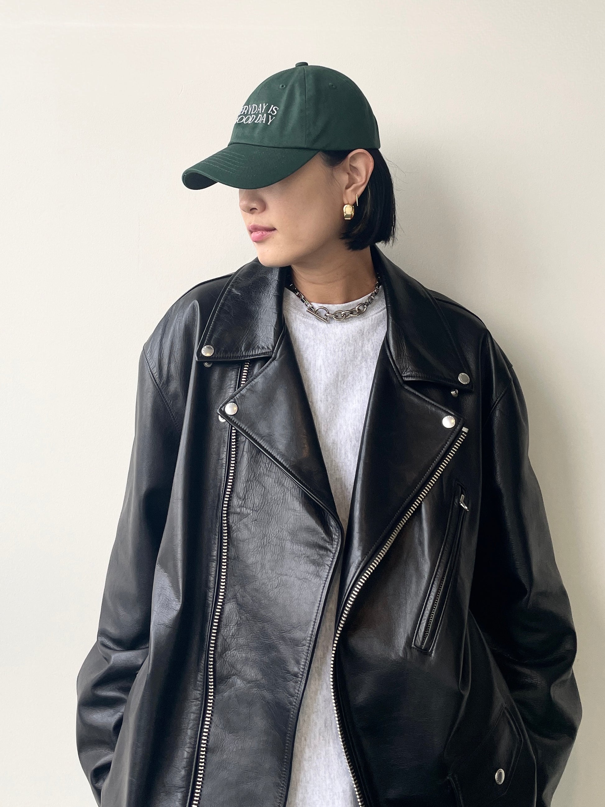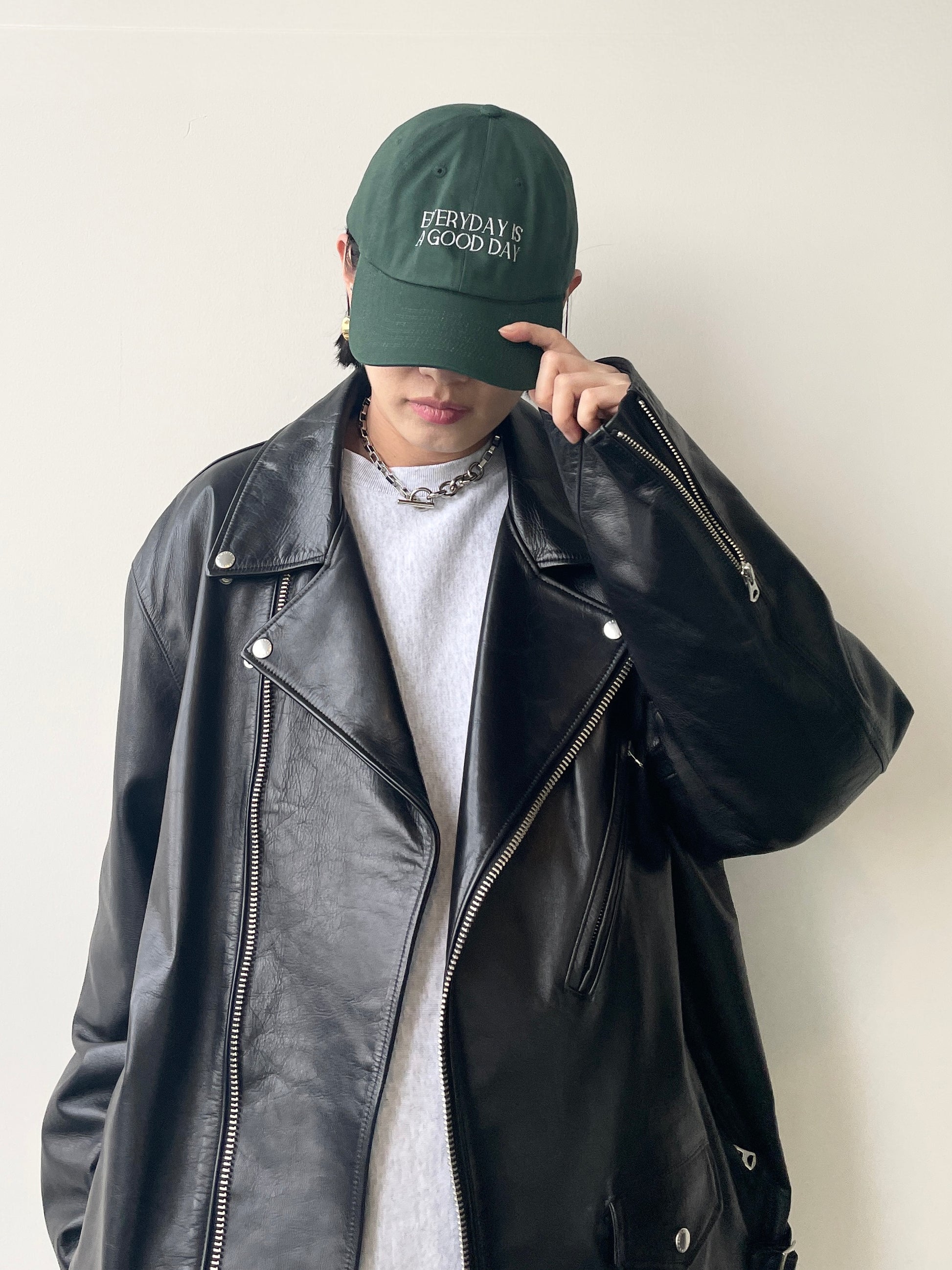 刺繍で前面に[EVERYDAY IS A GOOD DAY]背面に[HAVE A GOOD ONE]